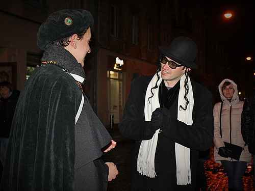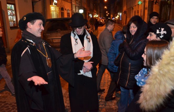 На цій екскурсії Ви – разом з історичними персонажами Львова: мудрим бургомістром, хитрим євреєм, бароном жебраків, строгим монахом і веселими батярами - мандруватимете в часі вуличками середньовічного Львова. У розважальній та цікавій формі Ви дізнаєтесь про те, чим прославились і які рекорди поставили львівські мери у часи Середньовіччя. У єврейському кварталі Вас розважатиме єврей-танцівник, який проведе почесних гостей нашого міста рідними місцями, показуючи цікаві львівські кнайпи, де у меню немає фіксованих цін, а з будинків просто посеред вулиці звисають дракони. Тут Ви дізнаєтесь, яка ж нація навчила львів’ян так вигідно торгувати і як євреї неодноразово змінювали обличчя нашого міста.